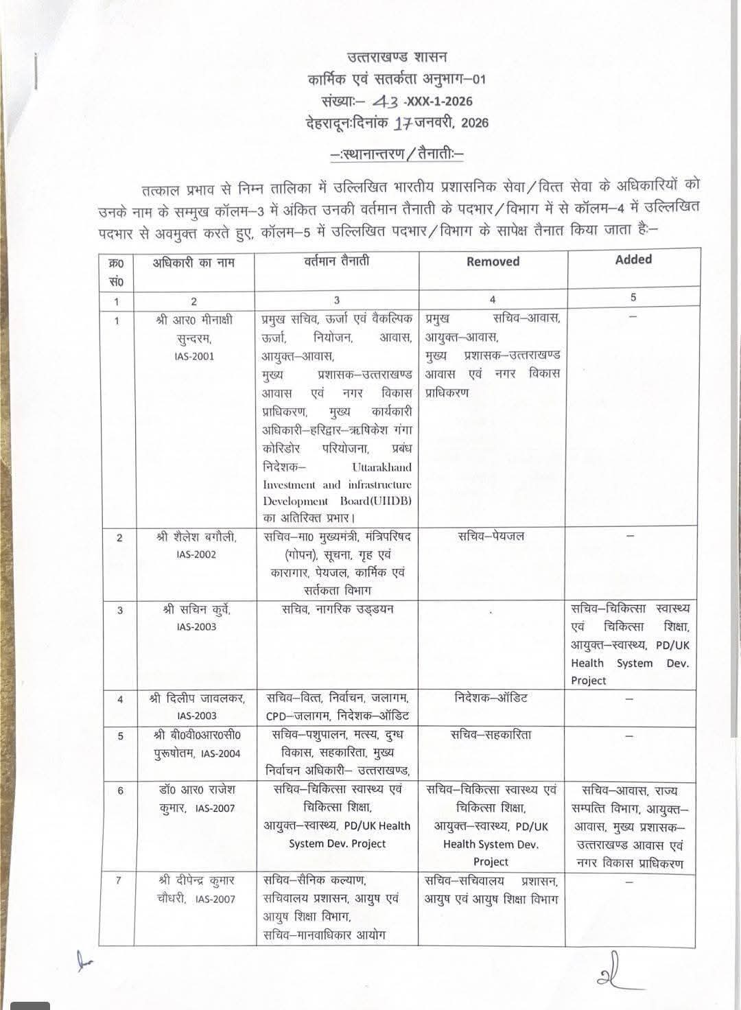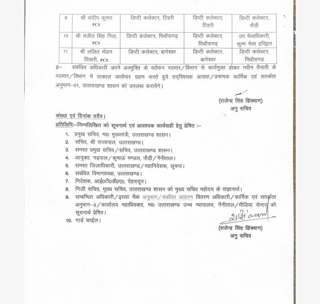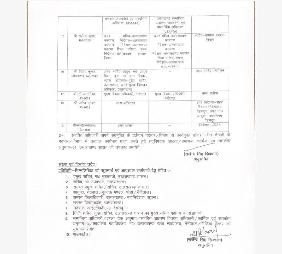 Big news आईएएस पीसीएस अफसरों के कामकाज में बड़ा फेरबदल January 17, 2026Vasundhara Deep Buero खबरे शेयर करे - देहरादून उत्तराखण्ड नौकरशाही में बड़ा फेरबदल आईएएस पीसीएस अफसरों के कामकाज में फेरबदल मीनाक्षी सुंदरम से आवास तो बगोली से पेयजल हटाया गया राजेश कुमार से स्वास्थ्य हटा आवास मिला स्वास्थ्य के नए बॉस सचिन कुर्वे बने खबरे शेयर करे -