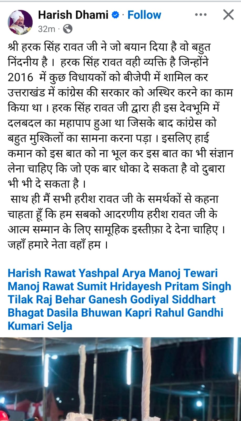 साथ ही मैं सभी हरीश रावत जी के समर्थकों से कहना