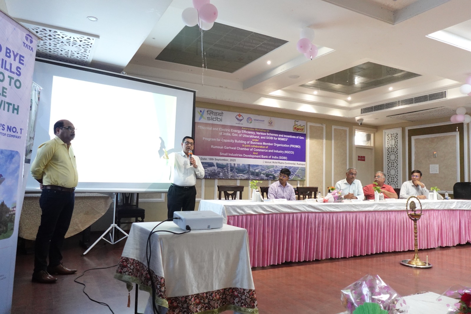 काशीपुर। कुमायूँ गढ़वाल चैम्बर ऑफ कॉमर्स एण्ड इण्डस्ट्री (केजीसीसीआई) द्वारा होटल रुद्रा कॉन्टिनेंटल, रूद्रपुर में स्मॉल इंडस्ट्रीज डेवलपमेंट बैंक ऑफ इंडिया (सिडबी) के सहयोग से उद्योगो में “ऊर्जा दक्षता (एनर्जी एफिशिएन्सी) ” विषय पर एक महत्वपूर्ण सेमिनार का आयोजन किया गया। इस कार्यक्रम में विशेषज्ञों द्वारा उद्योगों में ऊर्जा सक्षम तकनीकों को अपनाकर ऊर्जा की खपत को कम करके उत्पादन क्षमता बढ़ाने और लागत घटाने के उपायों पर विस्तार से चर्चा की गयी। कार्यक्रम का संचालन श्री अंकित बंसल, कोषाध्यक्ष, केजीसीआई ने किया।