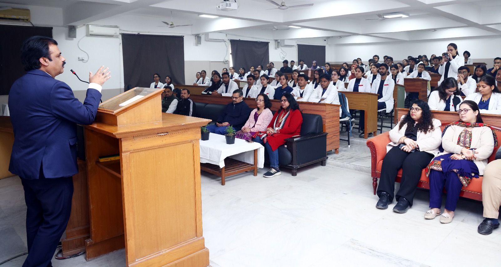 प्रो. सिंह तीर्थंकर महावीर डेंटल कॉलेज एंड रिसर्च सेंटर में स्ट्रेस मैनेजमेंट पर आयोजित कार्यक्रम में बोल रहे थे। इससे पूर्व मां सरस्वती के समक्ष दीप प्रज्जवलन और वंदना के संग कार्यक्रम का शुभारम्भ हुआ। इस मौके पर मेडिकल कॉलेज के प्राचार्य प्रो. एनके सिंह के साथ डीन स्टुडेंट्स वेलफेयर प्रो. एमपी सिंह बतौर मुख्य अतिथि, डेंटल कॉलेज के प्राचार्य प्रो. प्रदीप तांगड़े, वाइस प्रिंसिपल डॉ. अंकिता जैन आदि की गरिमामयी मौजूदगी रही। इस मौके पर डॉ. साधना सिंह, डॉ. उपेन्द्र मलिक, डॉ. तबिहा खान, सुश्री प्रेमी पूर्णिमा, सुश्री तैयबा बी., सुश्री स्वर्णा कुमारी के संग-संग डेंटल कॉलेज के स्टुडेंट्स मौजूद रहे। संचालन स्टुडेंट काशवी वशिष्ठ ने किया।